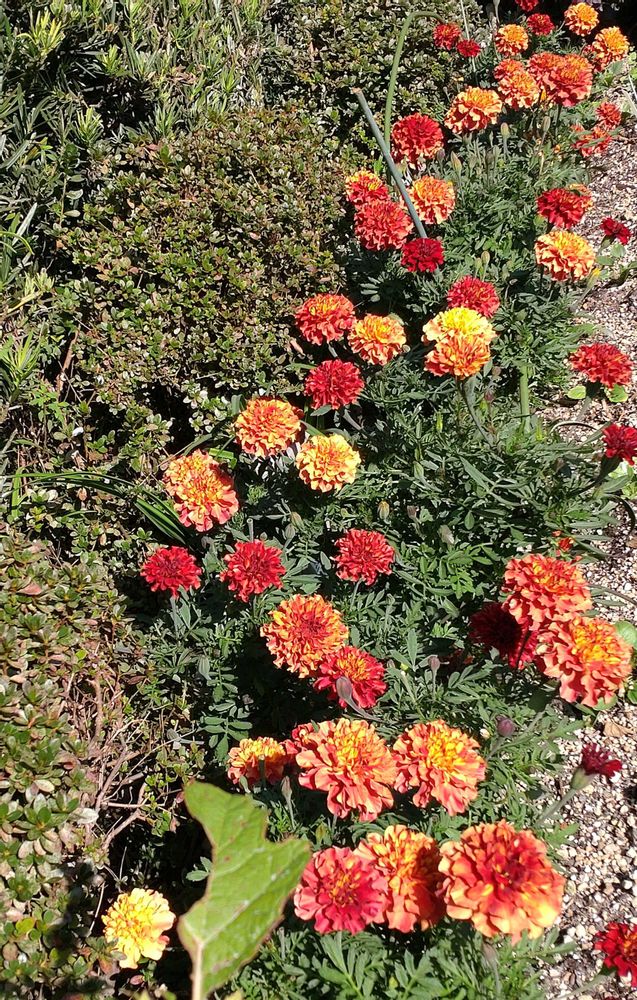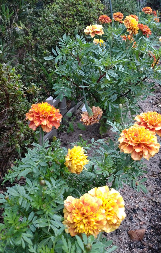 寒くなってきたからか?マリーゴールドの色が濃い真っ赤な色合いで綺麗に整ってきました!