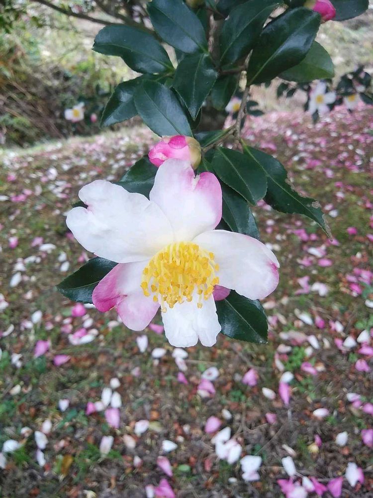 椿の花はボタっですけど、サザンカは桜の花びらのような散り方ですね😄