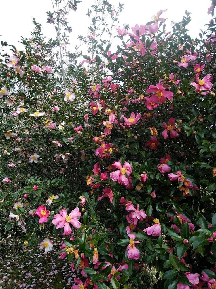 こんばんは♪サザンカ綺麗ですね😍。散り始めなのね、散る時は花弁1枚ずつ落ちるの?椿みたいに花そのまま1つ🌸でボタっと落ちるの?
