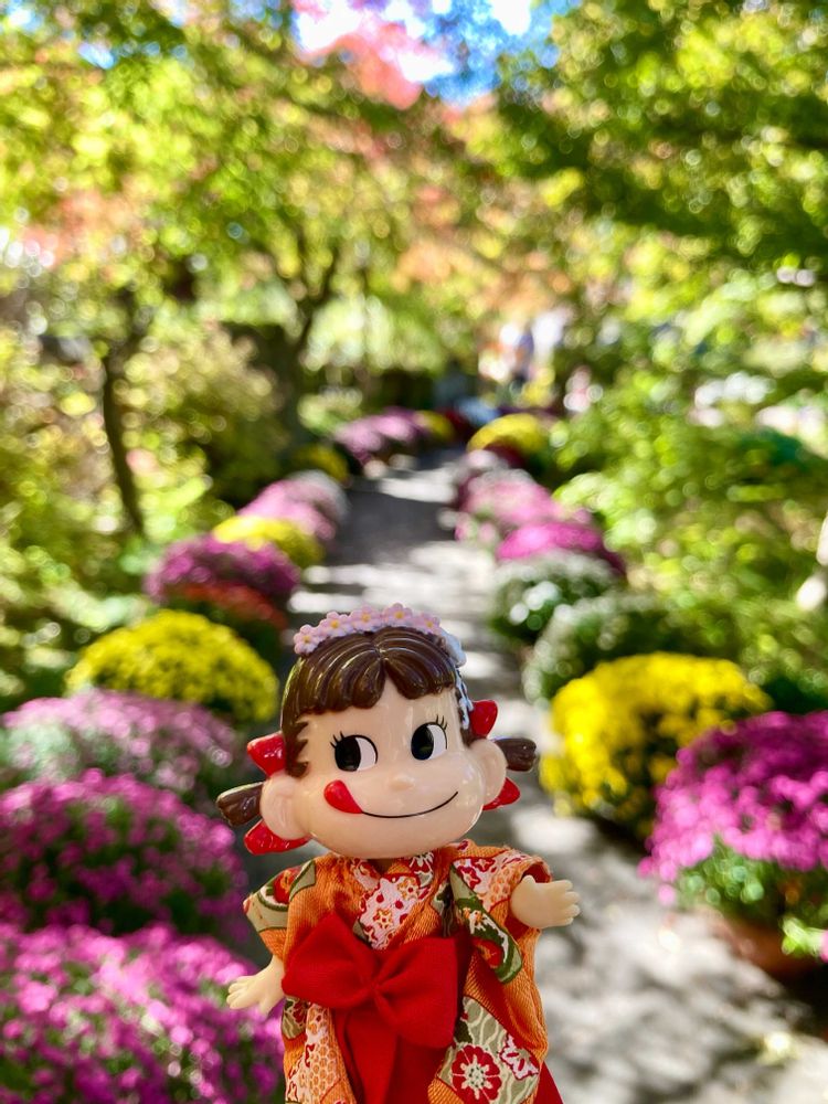 可愛い着物着たペコちゃんと紅葉🍁⠜が𐊪𐊦𐊢𐊤︎👍🏻💕