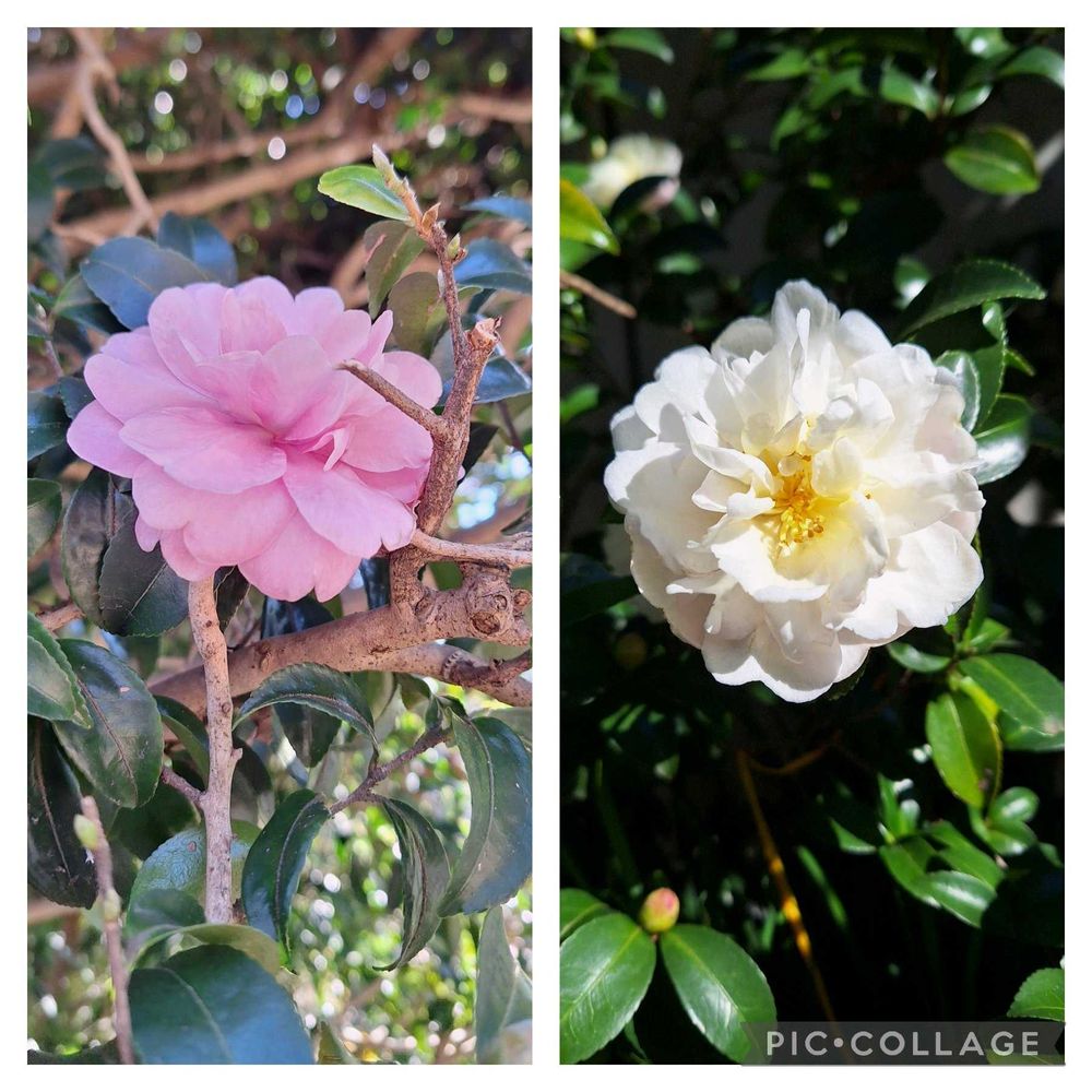 先に咲き始めるのはサザンカですね??花ごと落ちるのは椿…