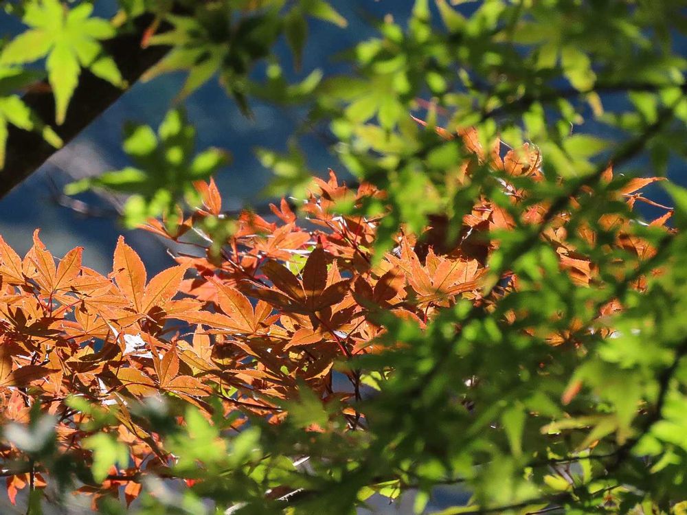 紅葉の名所の冠岳園に出かけてみましたが、今年はモミジの色付きが遅く、まだまだ青紅葉が勝っていました
