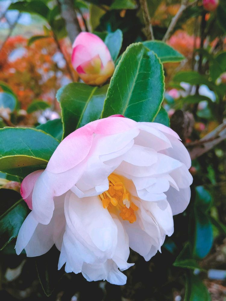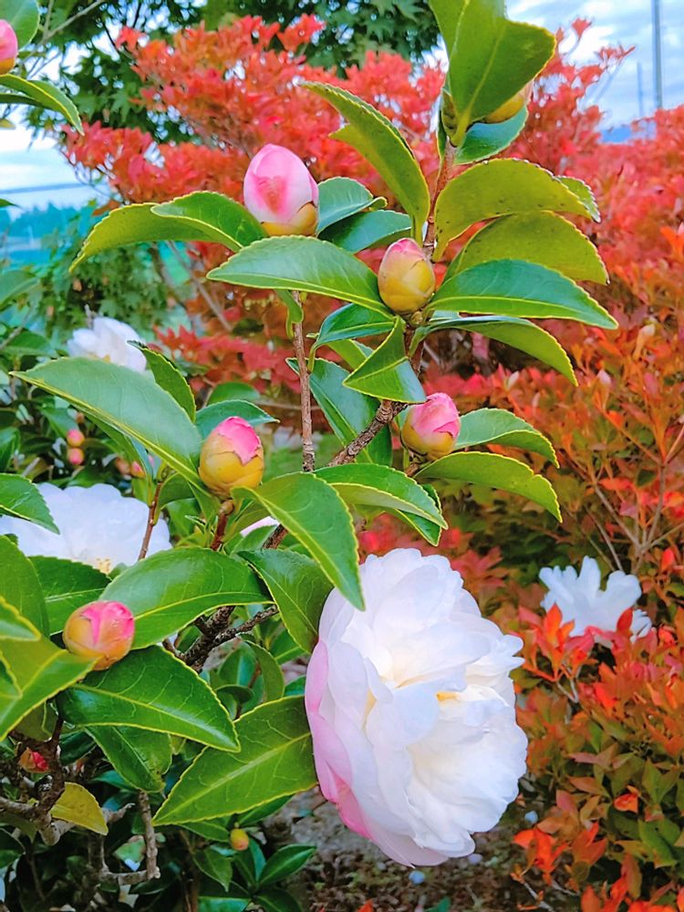 清々しい真っ白な花びらに可愛いピンク色を添えた、正に胸キュンなサザンカさんでした🥰💖