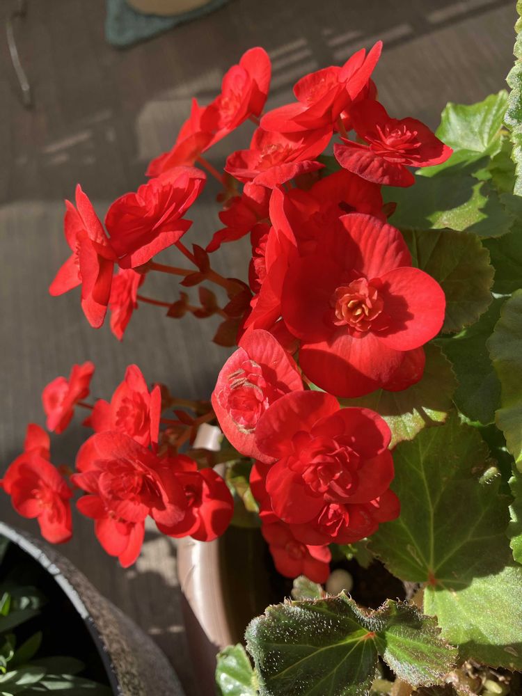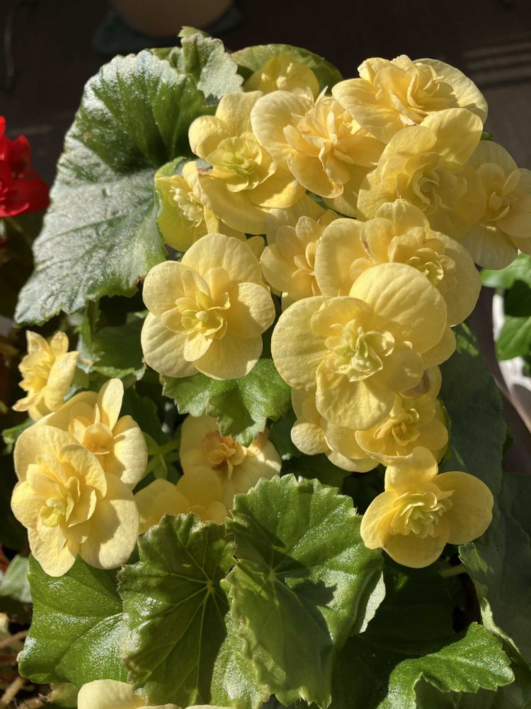 赤と黄はリーガースベゴニアで、白は別の日に買ったベゴニア フォーチュンで、同じ鉢に仲間入りさせました😌