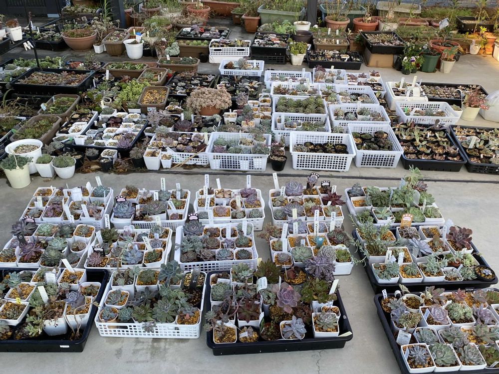 3枚目の前の方の子たちは、いつもは、軒下多肉棚にいます。水やりするために並べました。