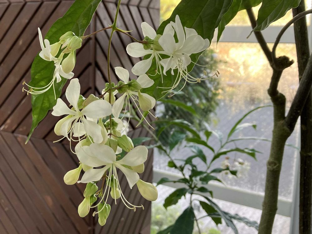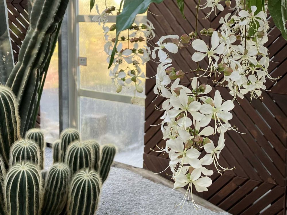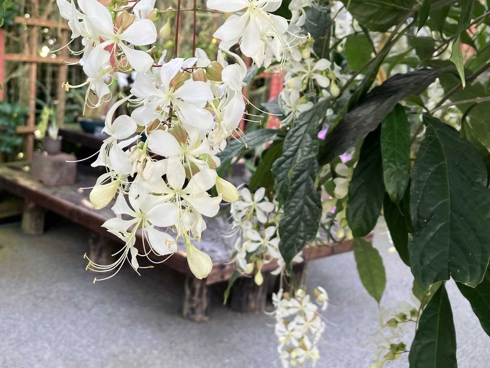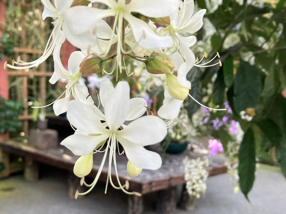 温室へはバニラの実を観に行ったのですが、それよりもクラリンドウの花が見頃でとても綺麗に咲いていました😍