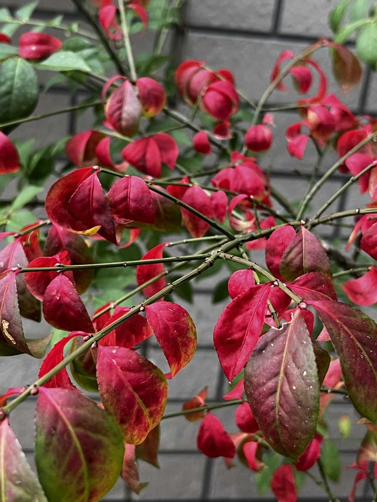 季節の移ろいを感じて、暖かい彩りに変化するニシキギの華やぎ素敵だなぁ🎵✌️