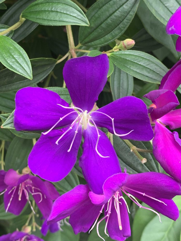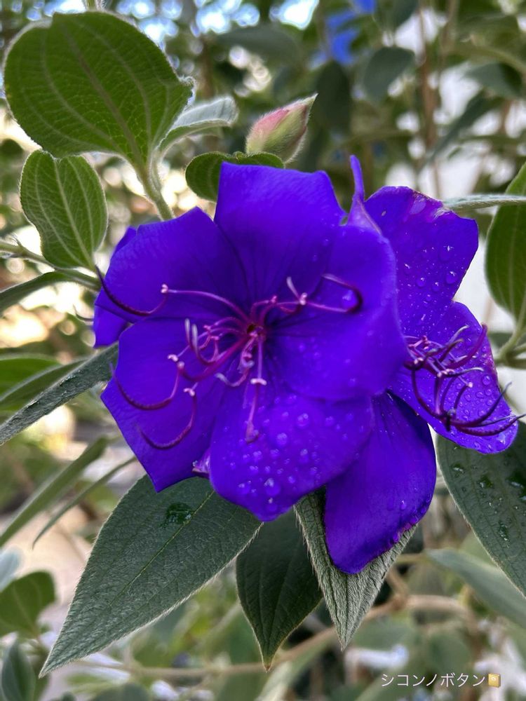 一日花で鮮やかな紫色の花が次々と開花する熱帯花木で、葉は対生し生毛で覆われています。