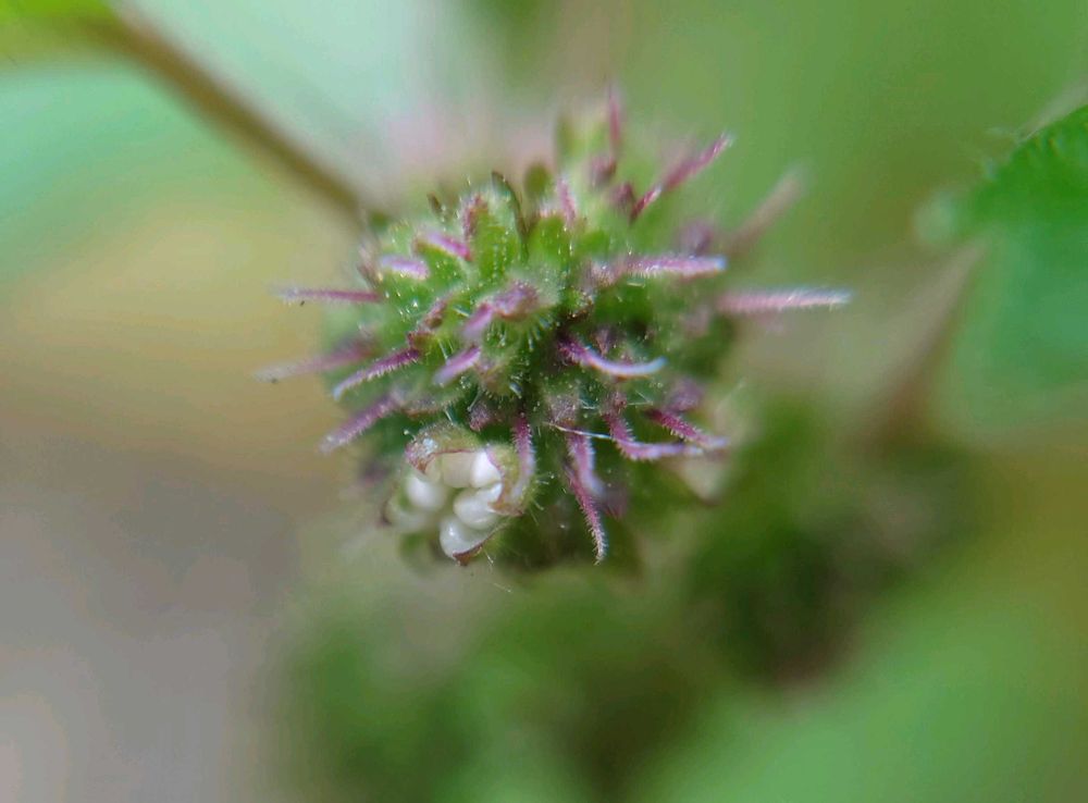 画像2枚目では、たくさんの紅紫色の花柱が見られるが、その一つ一つが雌花であることを指す