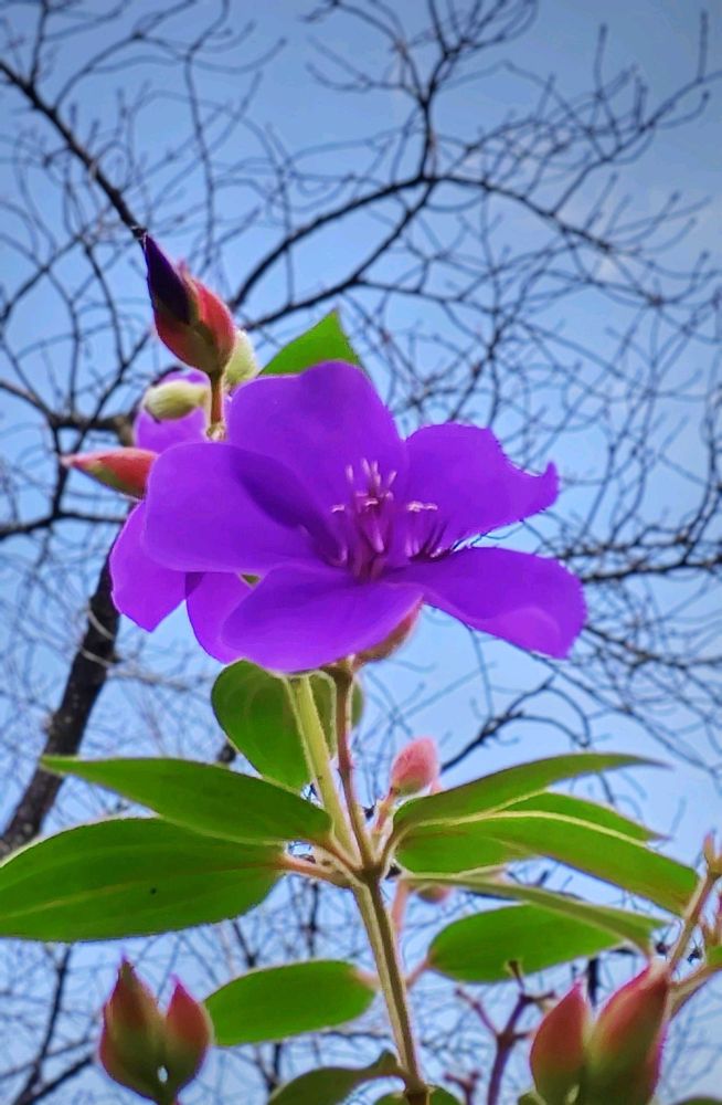 紫色の美しい花姿です目の覚める思いです。清らかな魂の中に凛々しさを兼ね備え他を寄せ付けない風格を感じました。