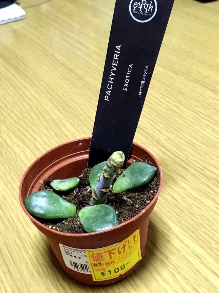 HCの見切り品、無残な姿だけど、葉挿しにはできるかな?100円だし!と狩って帰ってきたら、かってにばらばらになりすでに葉挿し一択です‥、この茎は残すべき?脇芽は出るのか?