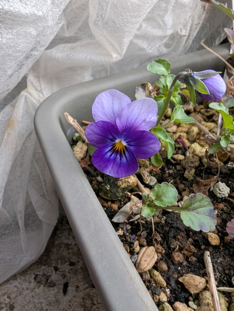 庭の終わった鉢を片付けなきゃだけど、こぼれ種のビオラも頑張ってます✨