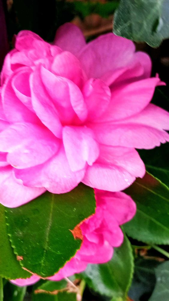 小さな庭の、八重咲きサザンカの開花🌸です。