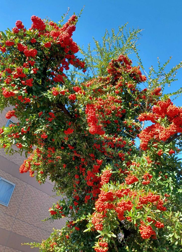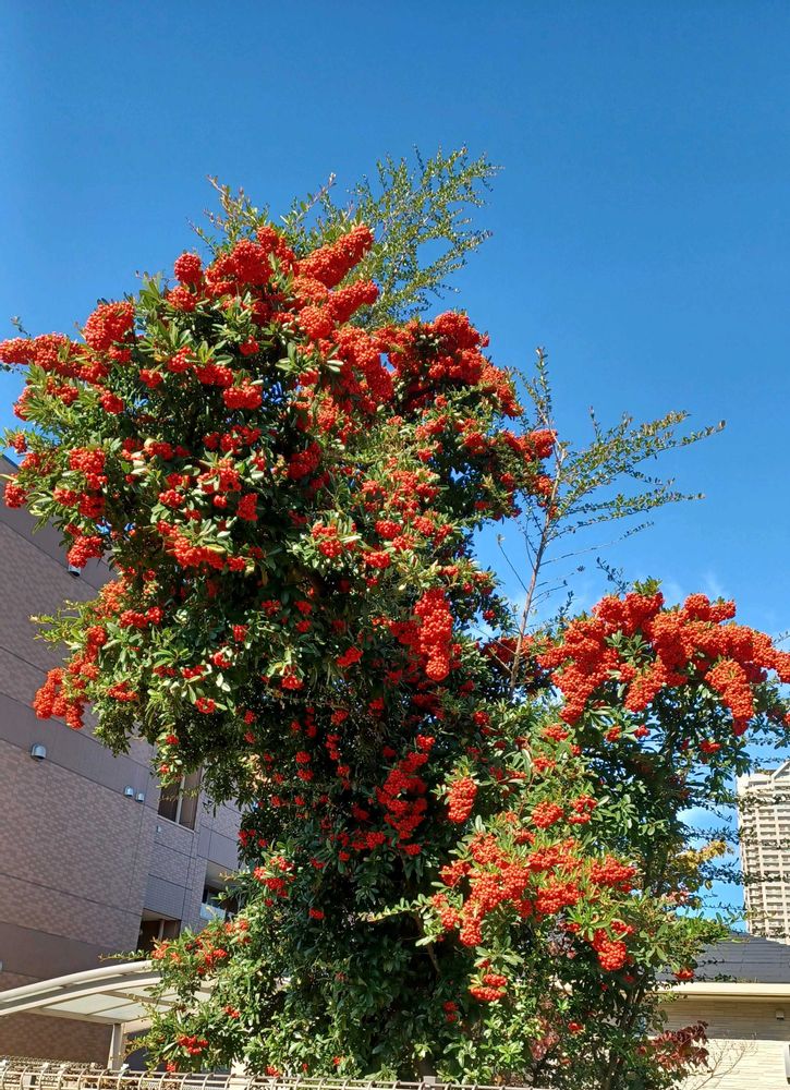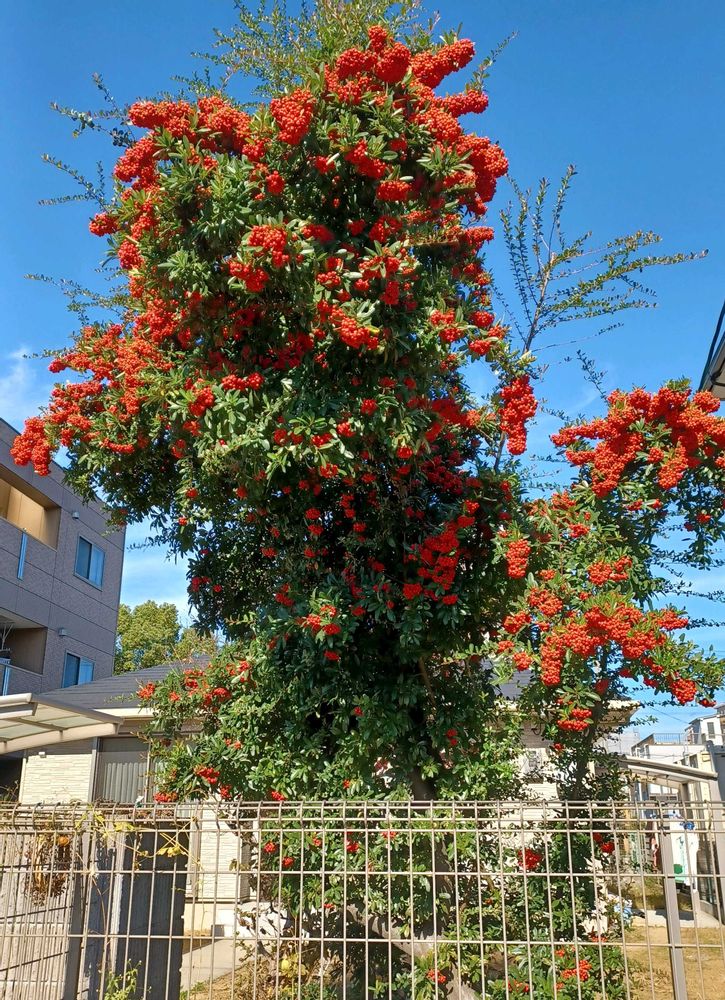 近所にはピラカンサ植えてるお家🏠結構あって どこもいっぱい実をつけています🔴🔴🔴