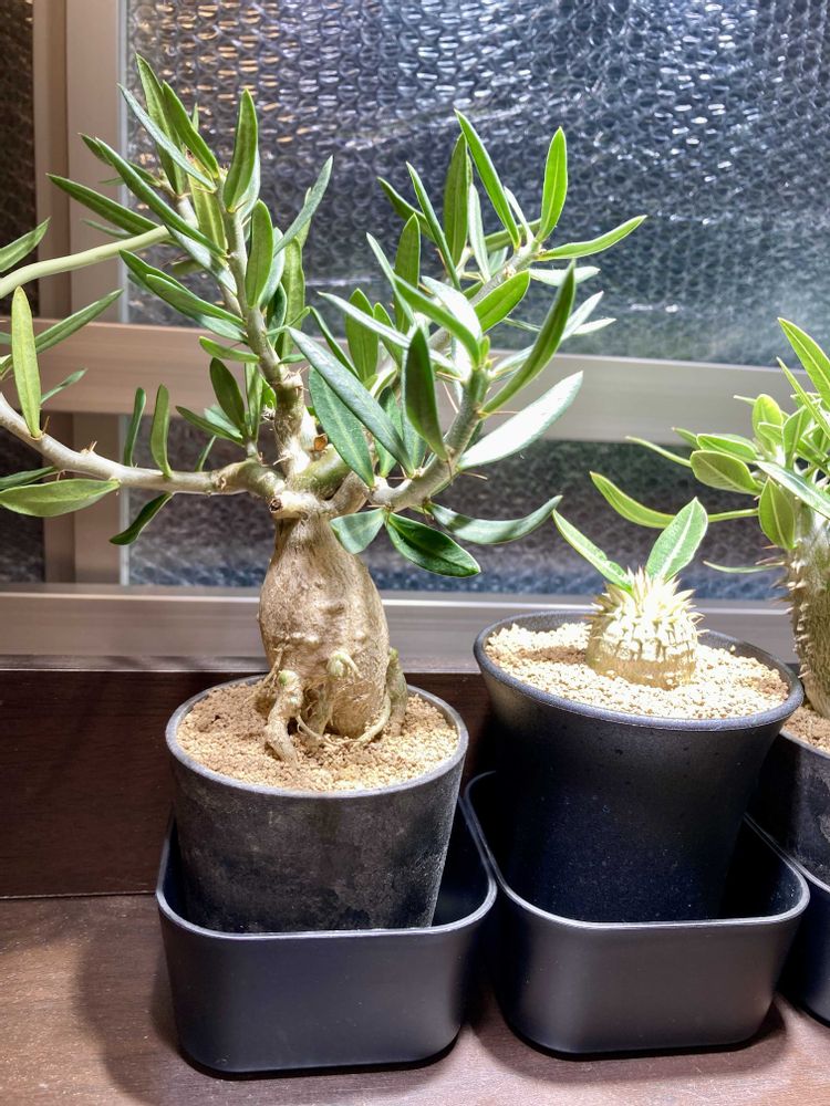 パキポとアデニウムの一部が元気いっぱいに緑色で、ちょっと戸惑ってます😅