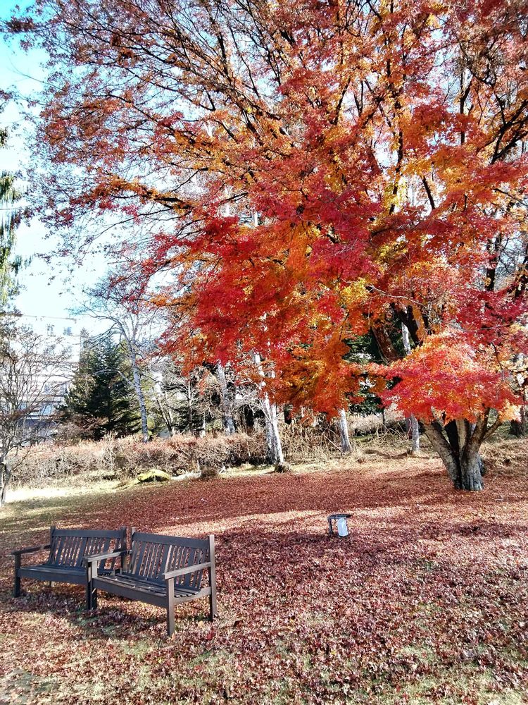 このベンチ、紅葉している今!だからこそ意味がありますね✌️