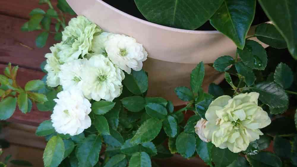 ミニバラのグリーンアイスが咲き続けてくれています(^^)