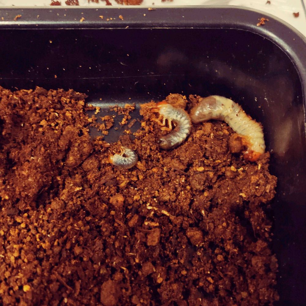 そしたら土が団子状ででてきたのでもしやと思ったらコガネムシの幼虫が4匹🐛