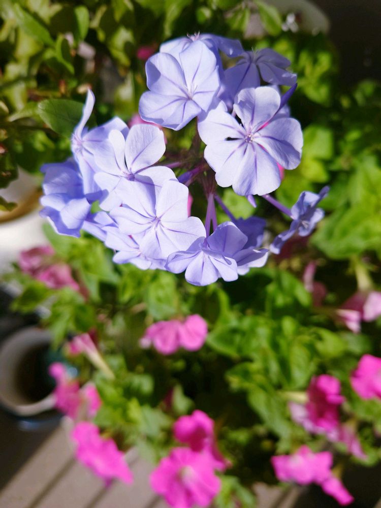 ベランダの「ルリマツリ」と「ペチュニア」🌿🩵💕