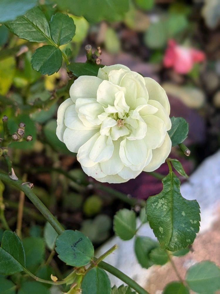 ③「グリーンアイス」バラは日当たりが肝心 他の花の陰になってるとなかなか綺麗な顔を拝めません