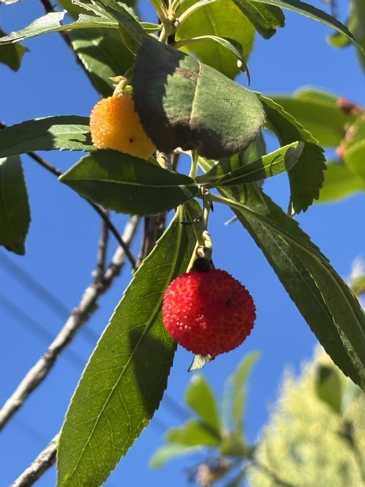 例年里山の道沿いに植えてある木はあまり綺麗な実ではなかったのですが、今回出会ったお宅のは赤や黄色が綺麗な実でした。