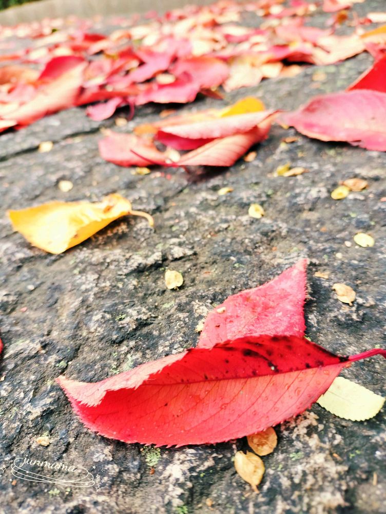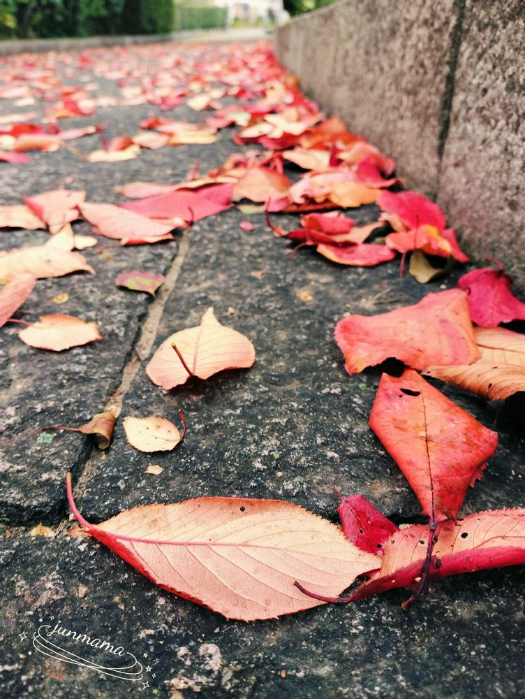 春には桜の花びらの絨毯になっていた場所が 今は紅葉の絨毯に💕