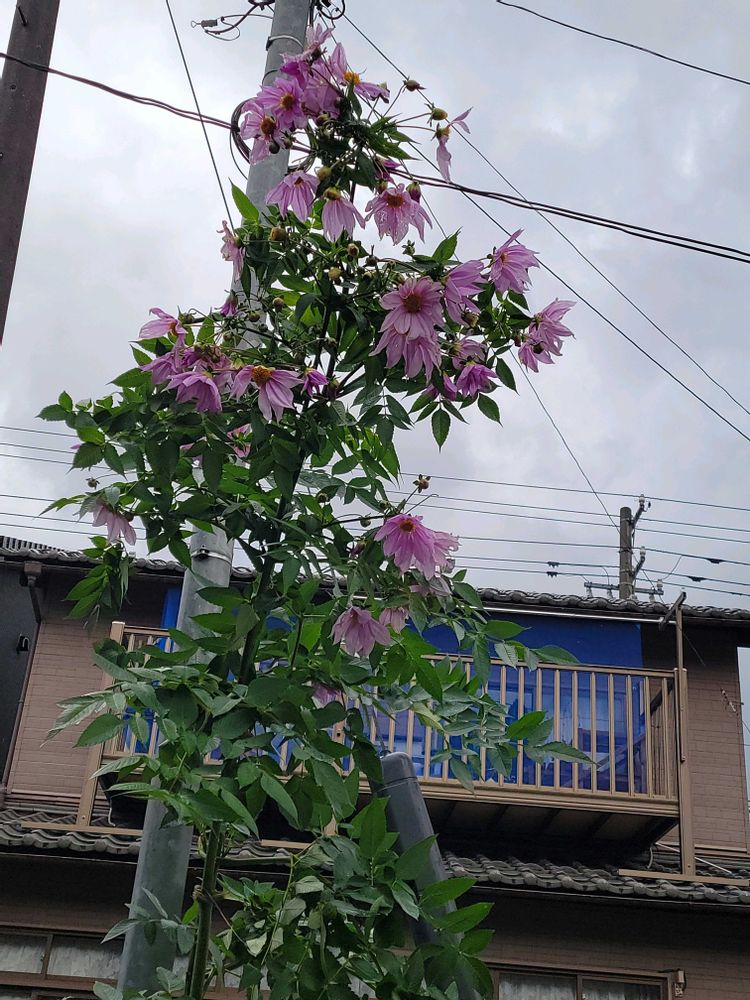 また支柱 電信柱にぐるぐる巻き😂 今日も雨風🌀🍃心配