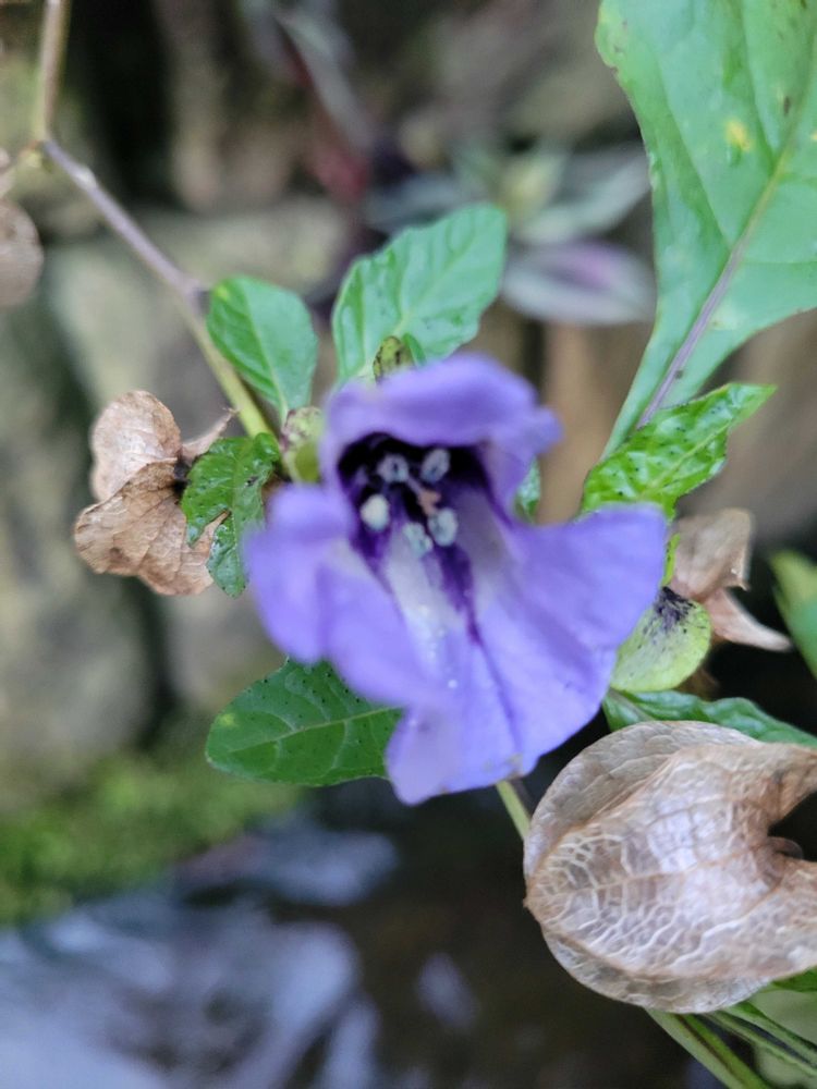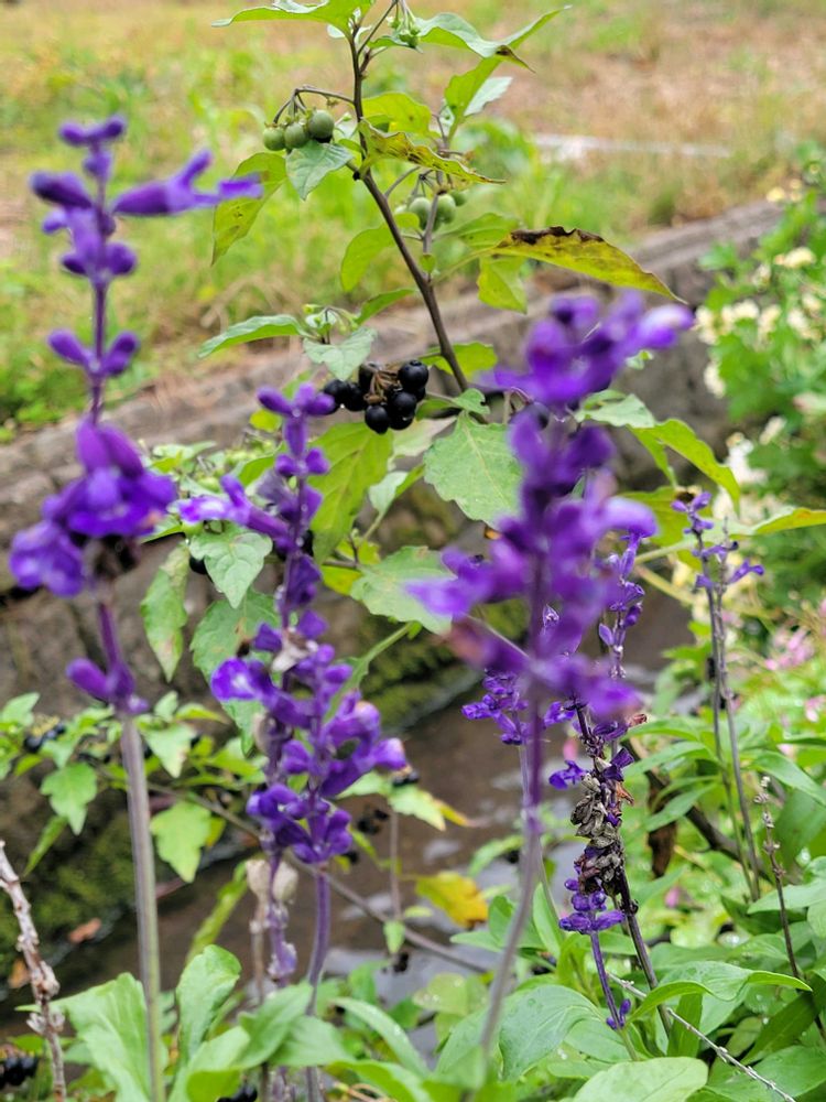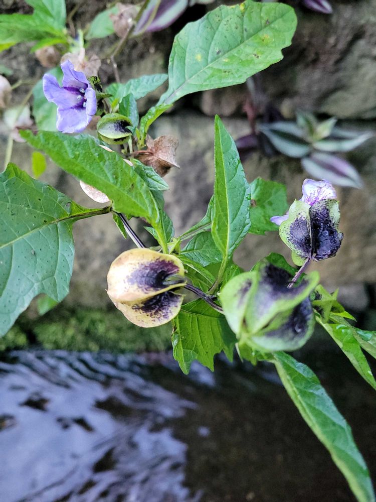 黒ほうずきのお花まだ咲いている🩵💜🍃実は少し色付き始め