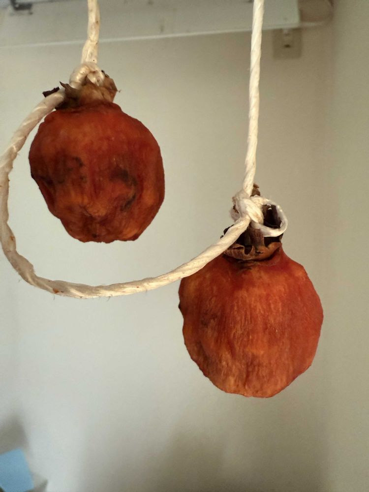 我が家の柿もできたのですが、外に干したので、少し黒っぽく仕上がりましたが、甘くて美味しかったです🎵