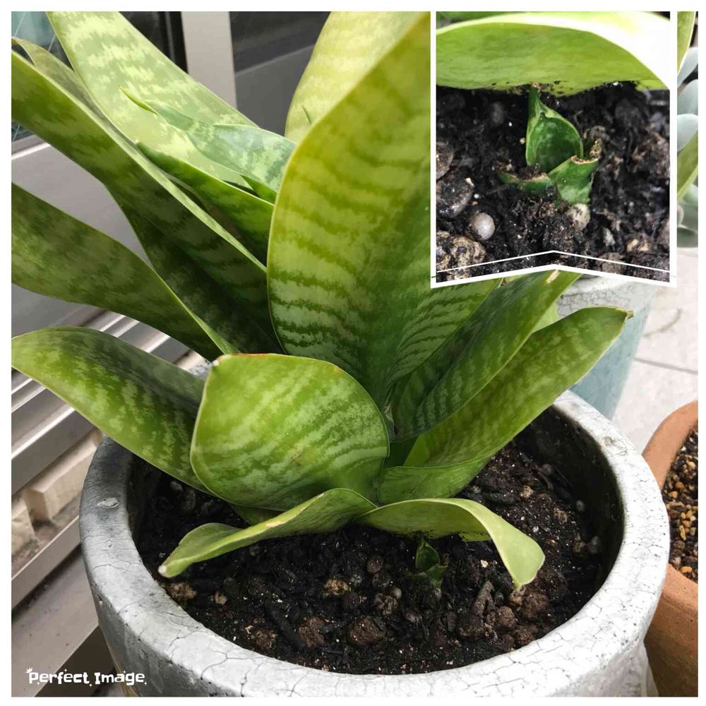 1ヶ月程前に子株を大量に株分けしたサンセベリアハニーの親株さん、
