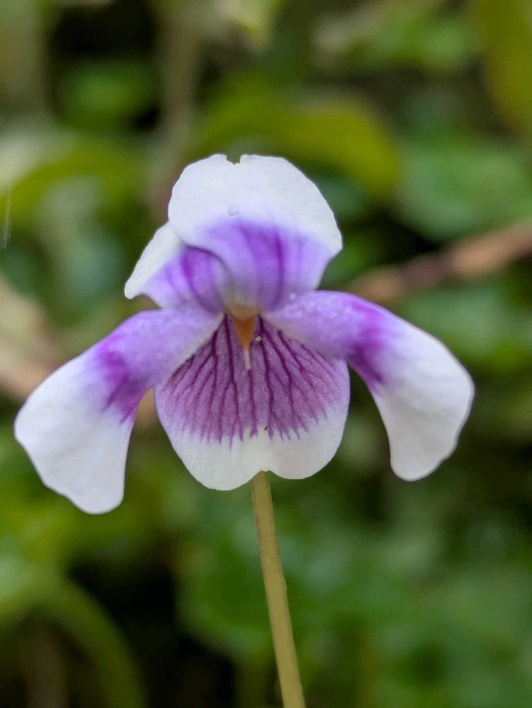 白地に紫のスポットが入る花姿から、日本ではパンダスミレと呼ばれる。