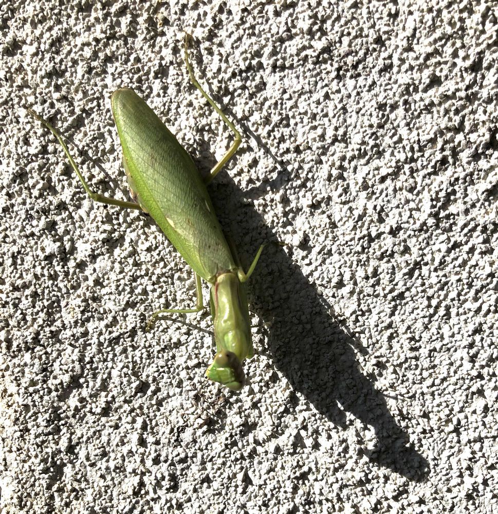 カベにカマキリがひなたぼっこ(?)してました