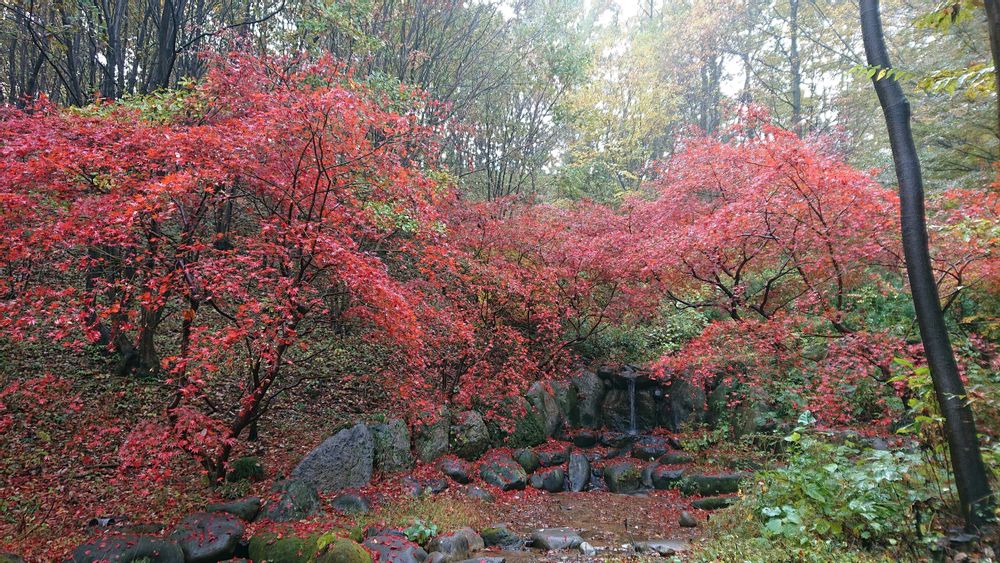 毎年楽しみにしているのは、紅葉で小さな滝が赤く染まるこの風景🍁