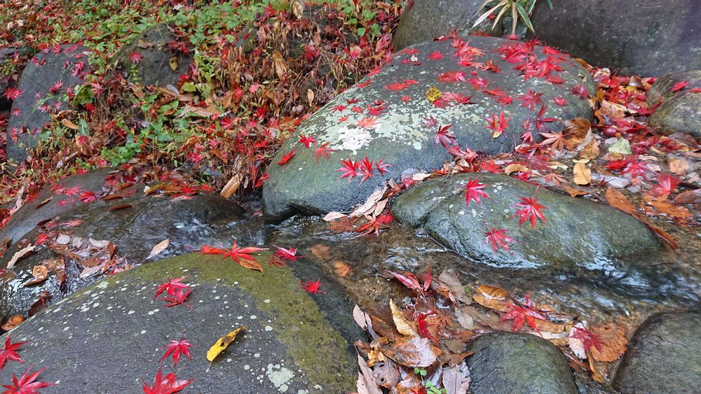 少しずつ色づいていた山の木々が落葉して落ち葉の絨毯になってきています🍂