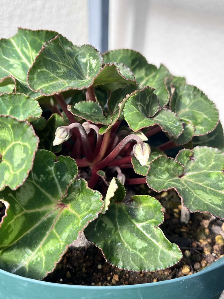 夏越ししたガーデンシクラメンの白花の方はもうツボミが上がってきてます😱🤍