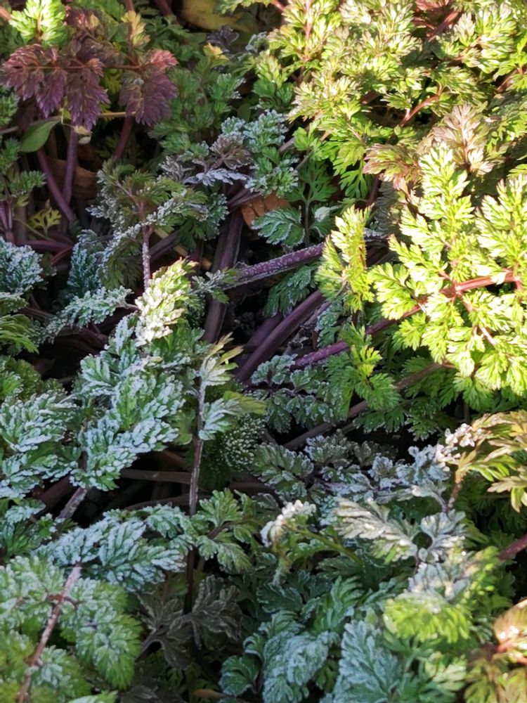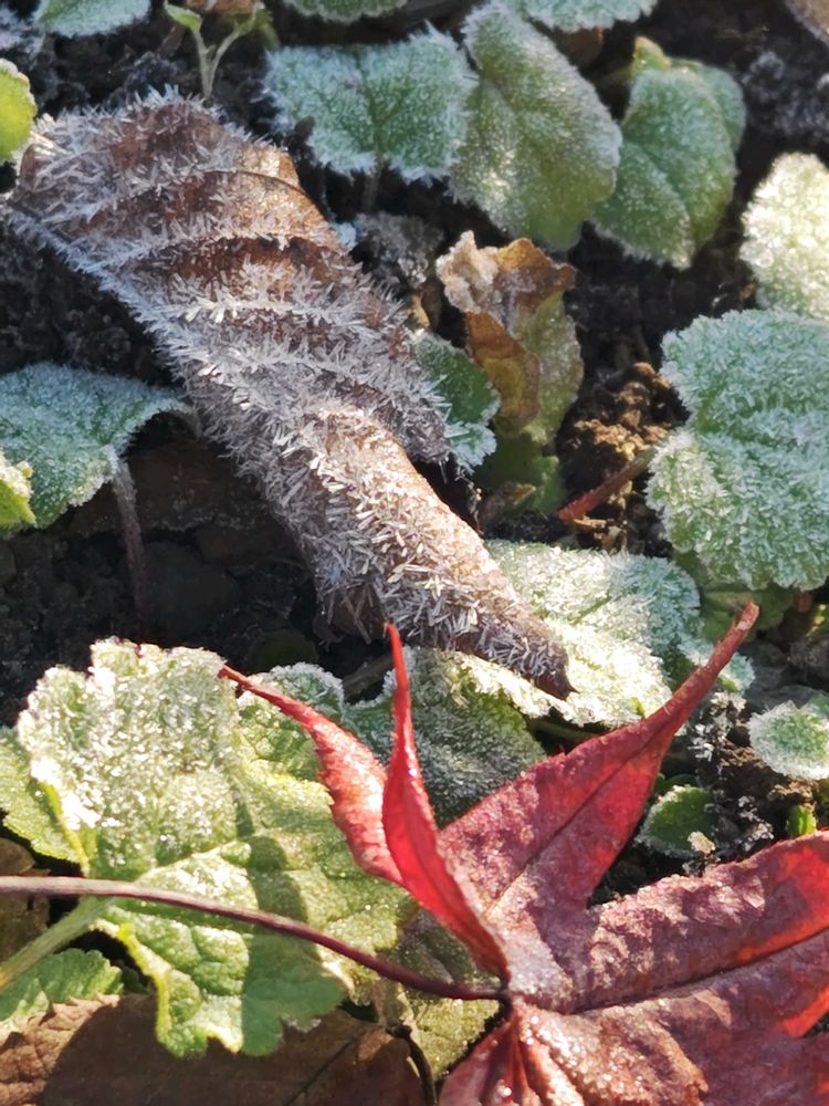 今日は朝から暖かい1日でしたが、昨日は🌿に霜がおりてました