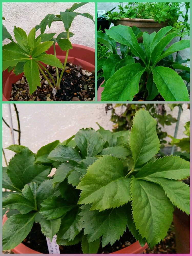 2枚目、クリスマスローズ♫左上が新入りさん🌱、右上が2年目☘️下が3年目🌿。