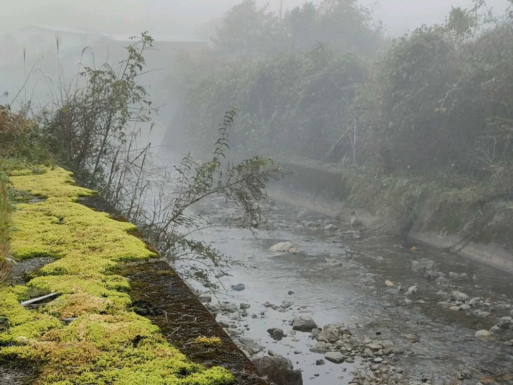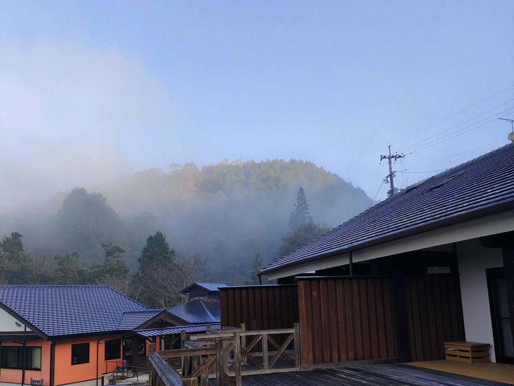 ①③町名の由来となった朝霧に覆われ白い朝を迎えました