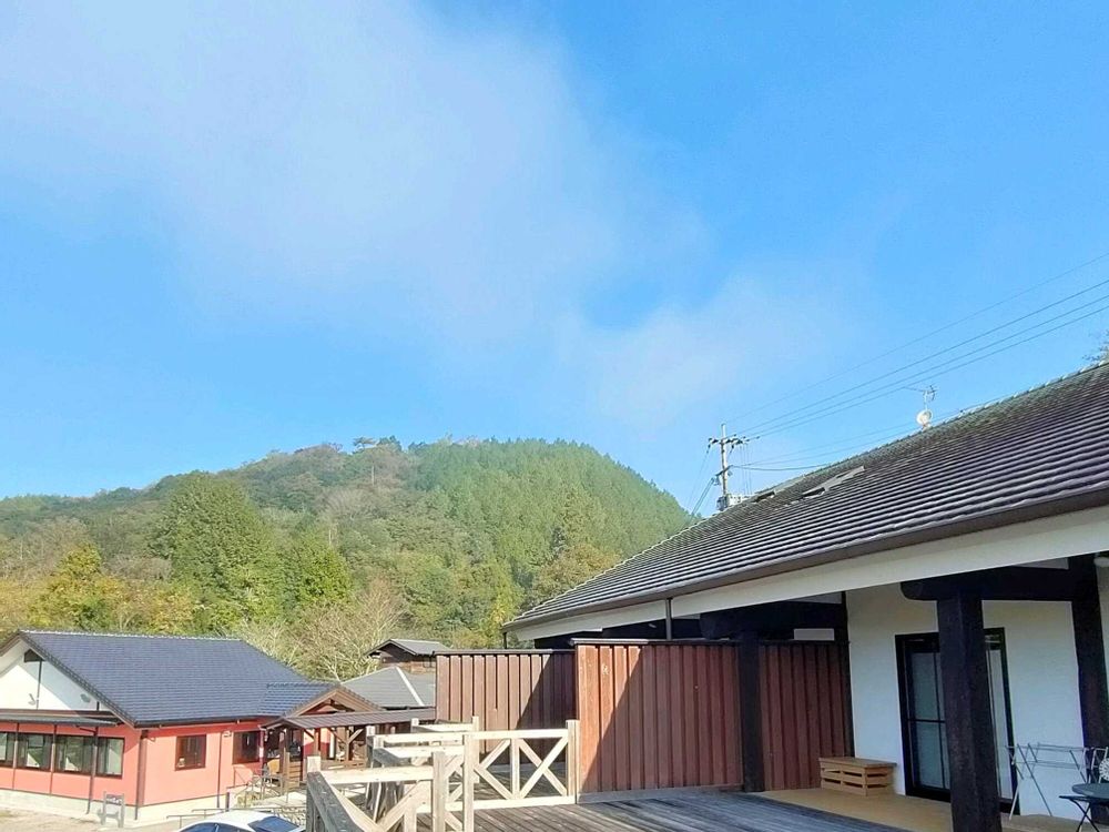 ②朝食後には霧も晴れ、青空が輝いていました。
