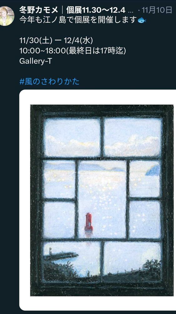 ②お散歩ちゃんの作者、冬野カモメ先生の毎年恒例の江の島個展が、11月30日〜12月4日まで行われます🙋🏻♀️