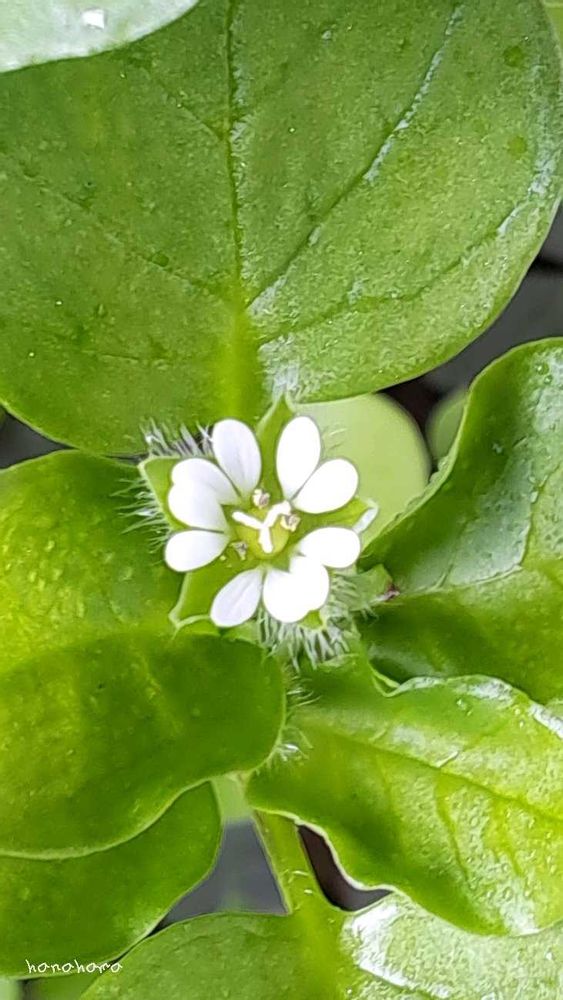 茎の色がコハコベの暗紫色とは異なり全体に緑色。