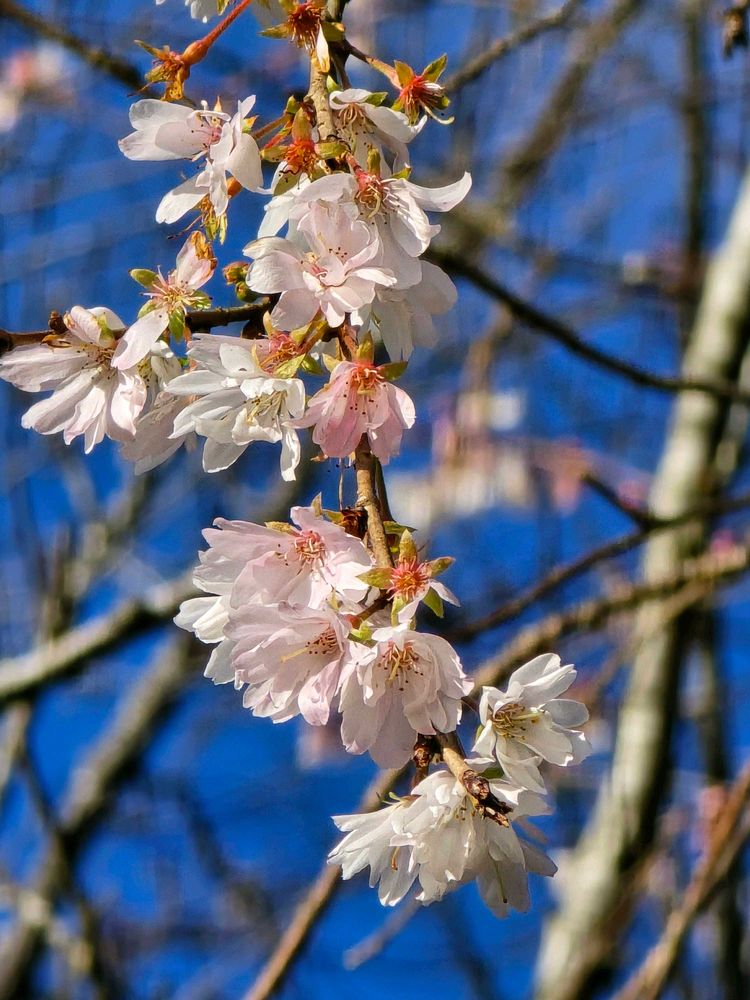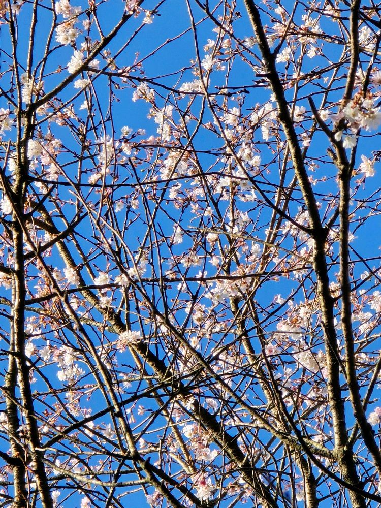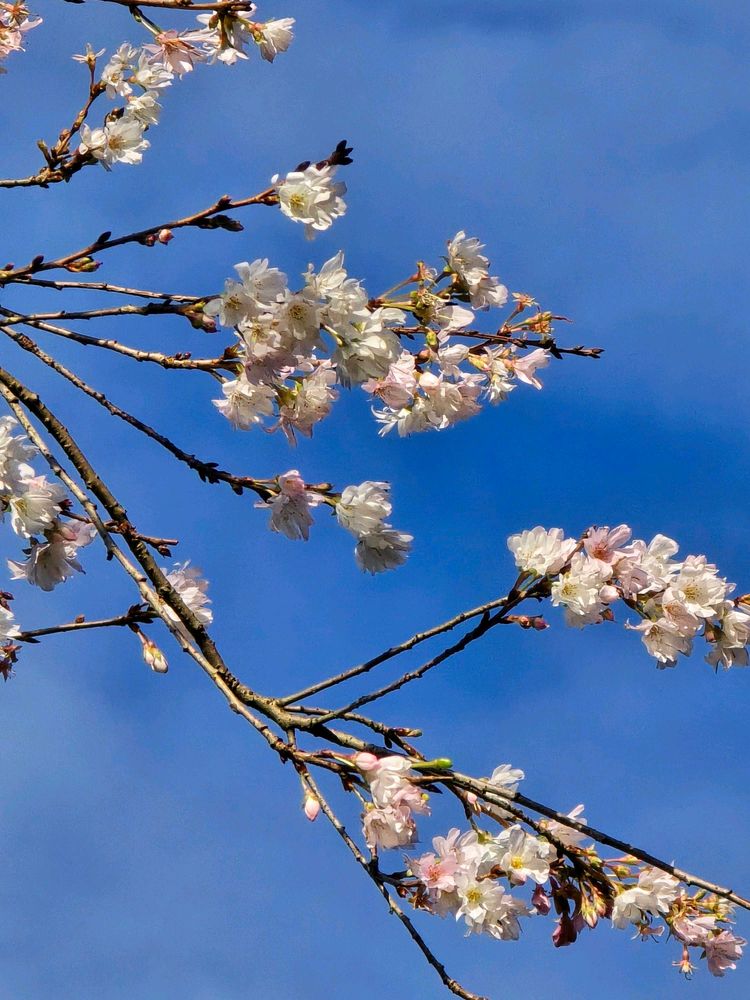 青空に映えて咲き誇り、春の歌声を奏でているような、雰囲気を放つ、🌸桜とのふれあいのひととき良かったじゃん(^o^)v🎵😀