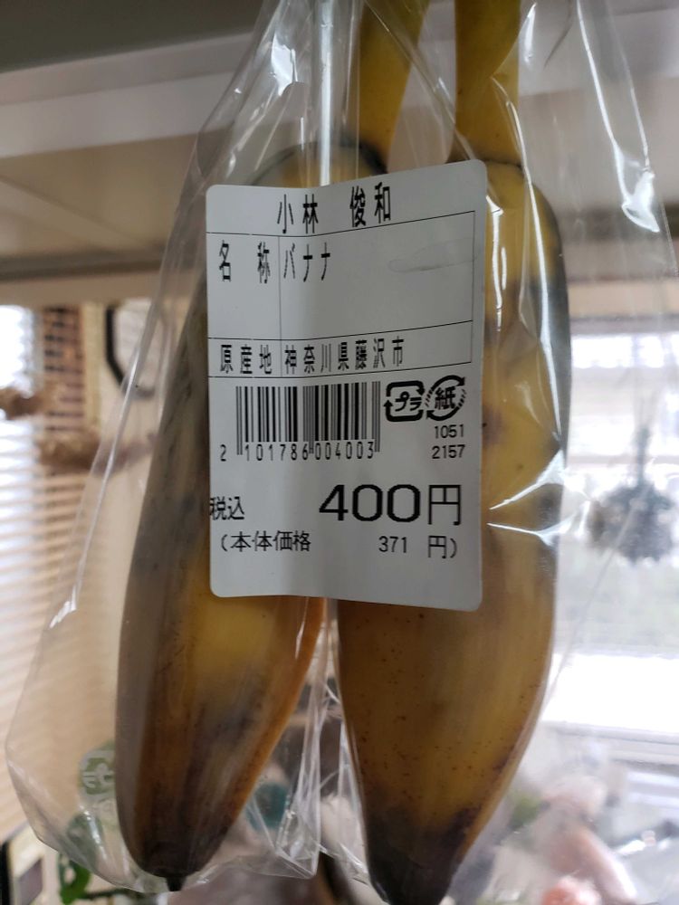 JAでおばさんが一生懸命バナナを見ていて、札を読んだら、藤沢産ということで、まずは味見!🤭つい手に取りましたよ😅