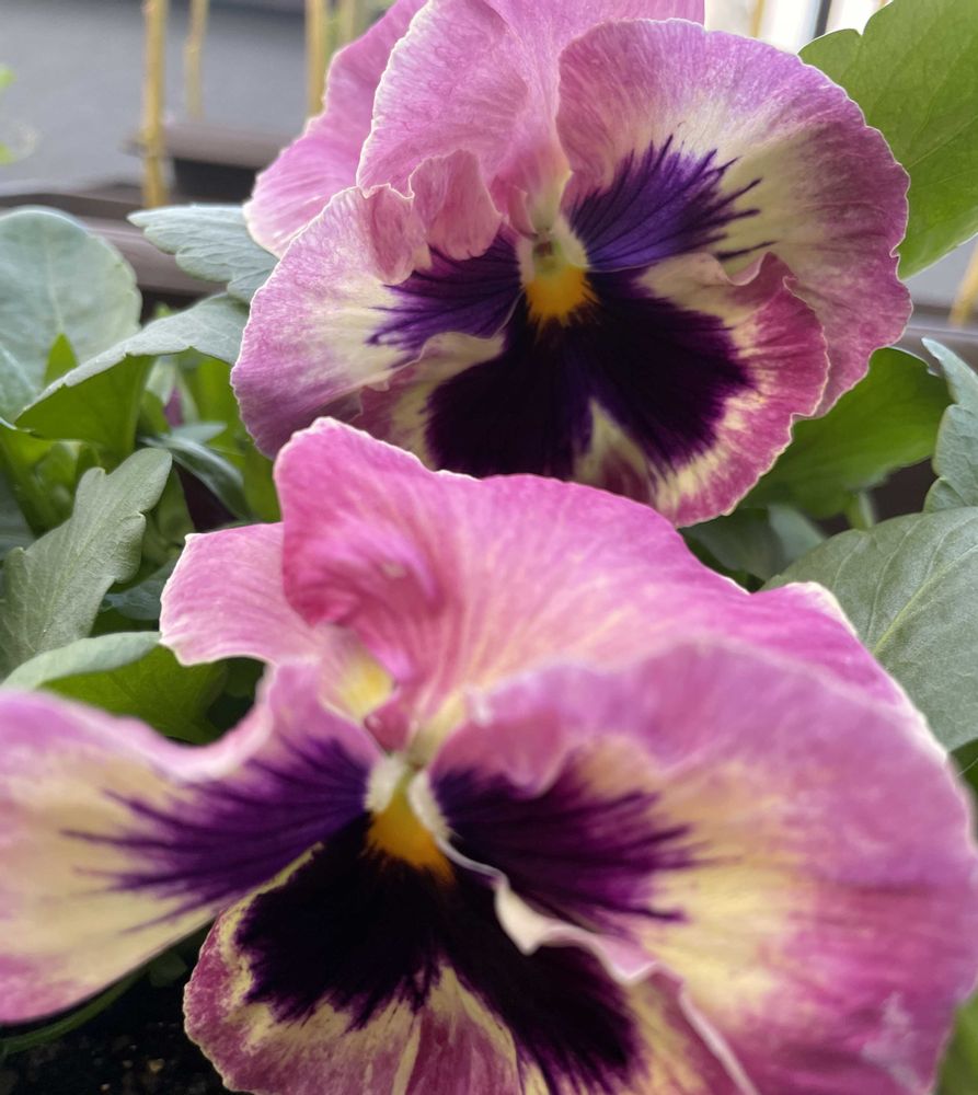 雨上がりで少し北風が出てきた朝、花を見に行ったら、パンジー・ボニータが咲いていました。