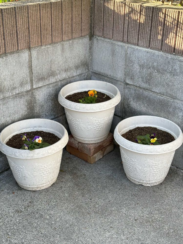 一昨日から夏に使っていた鉢を片付けたり、これからの花を植えられるように土作り(適当に)したりしていましたが、今日はやっとビオラやチューリップの球根を植え込みました。