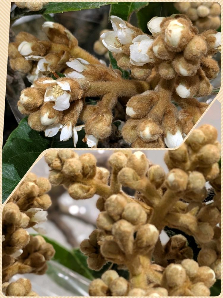 びわの花ってあの果物のびわですか?初めてびわの花を見ましたよ🧡