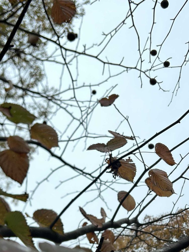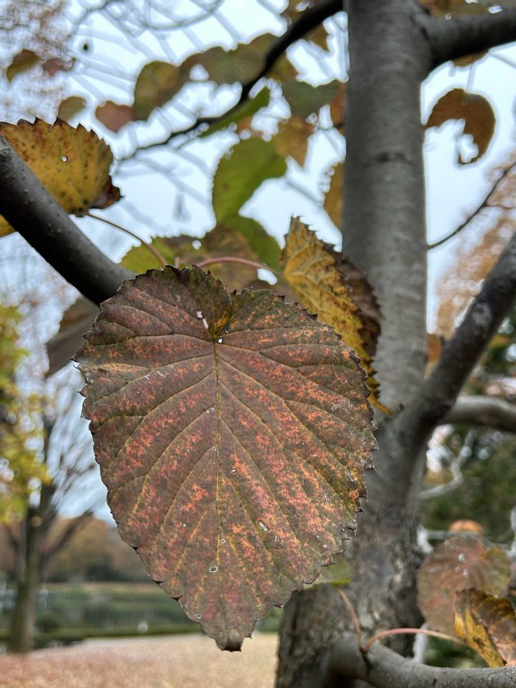 褐色に紅葉した葉はもうすぐ散りそうでした。