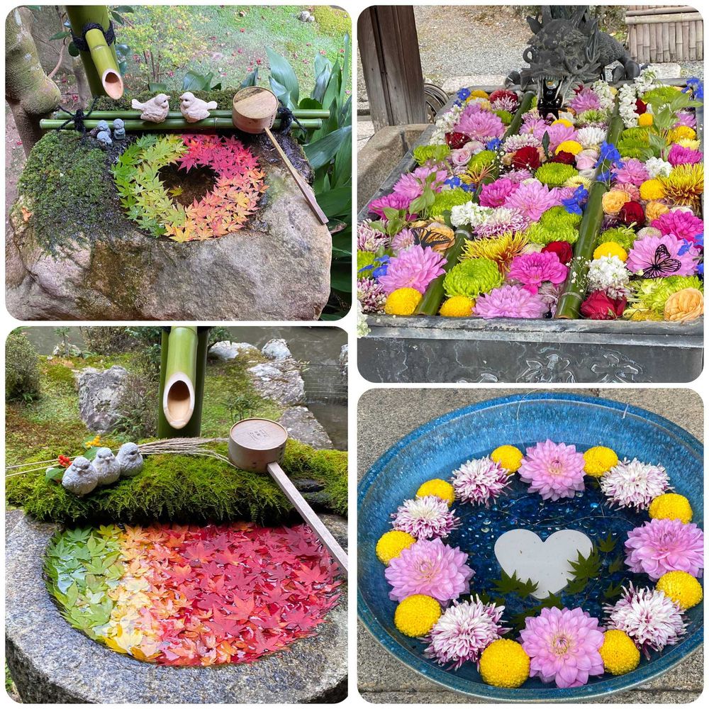 いつも思うのですが、花手水って、花屋さんが作ってるのかしら?