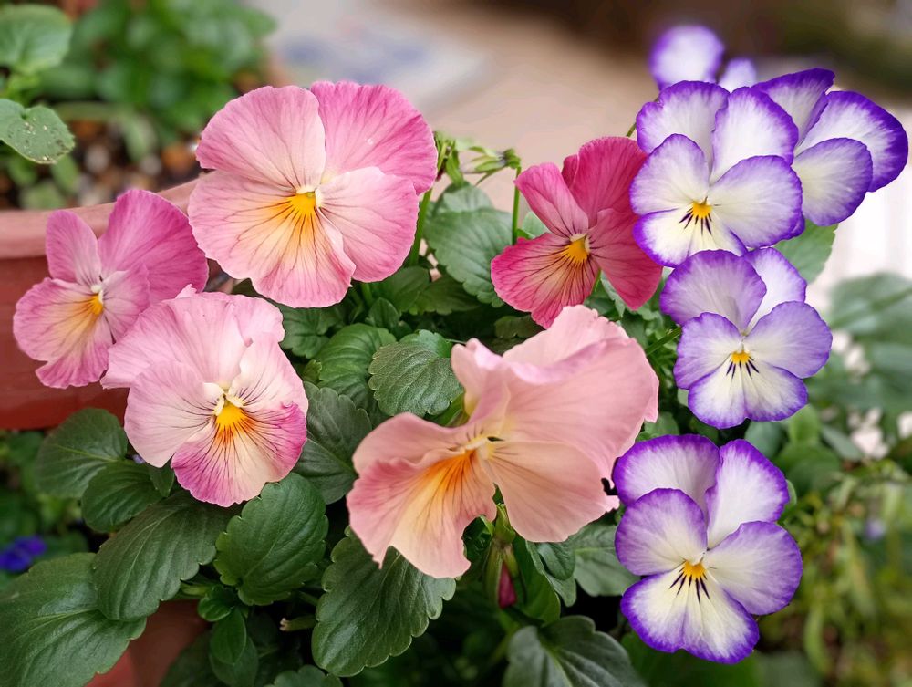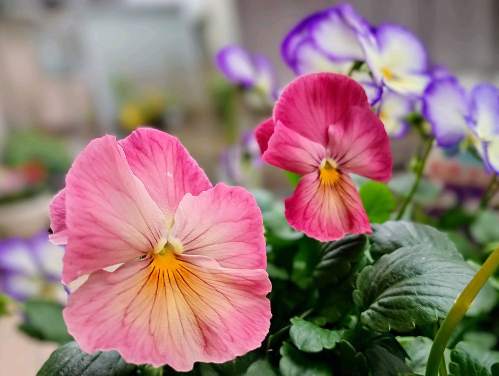 …と、パンジーの寄せ植えも次々と花を咲かせてくれ、寂しくなった🌹コーナー代わりに可愛く並んで💮💮💜😄