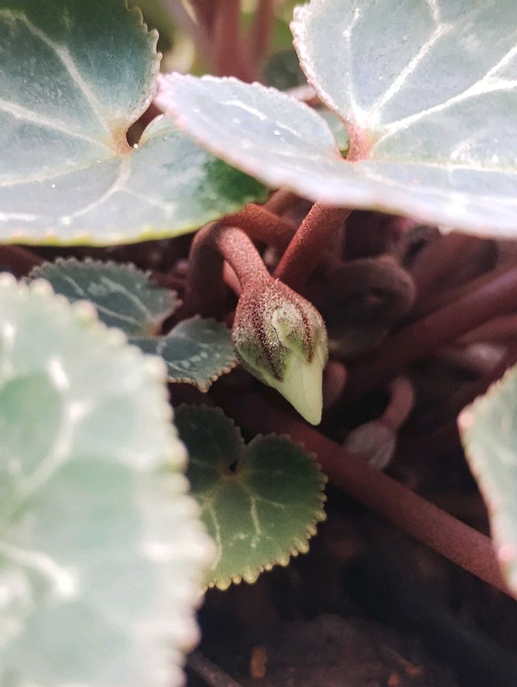地上部ナシ植えっぱなしのまま夏越しした鉢植えガーデンシクラメン、10月初旬に芽吹き、あっという間に葉が茂りました😆